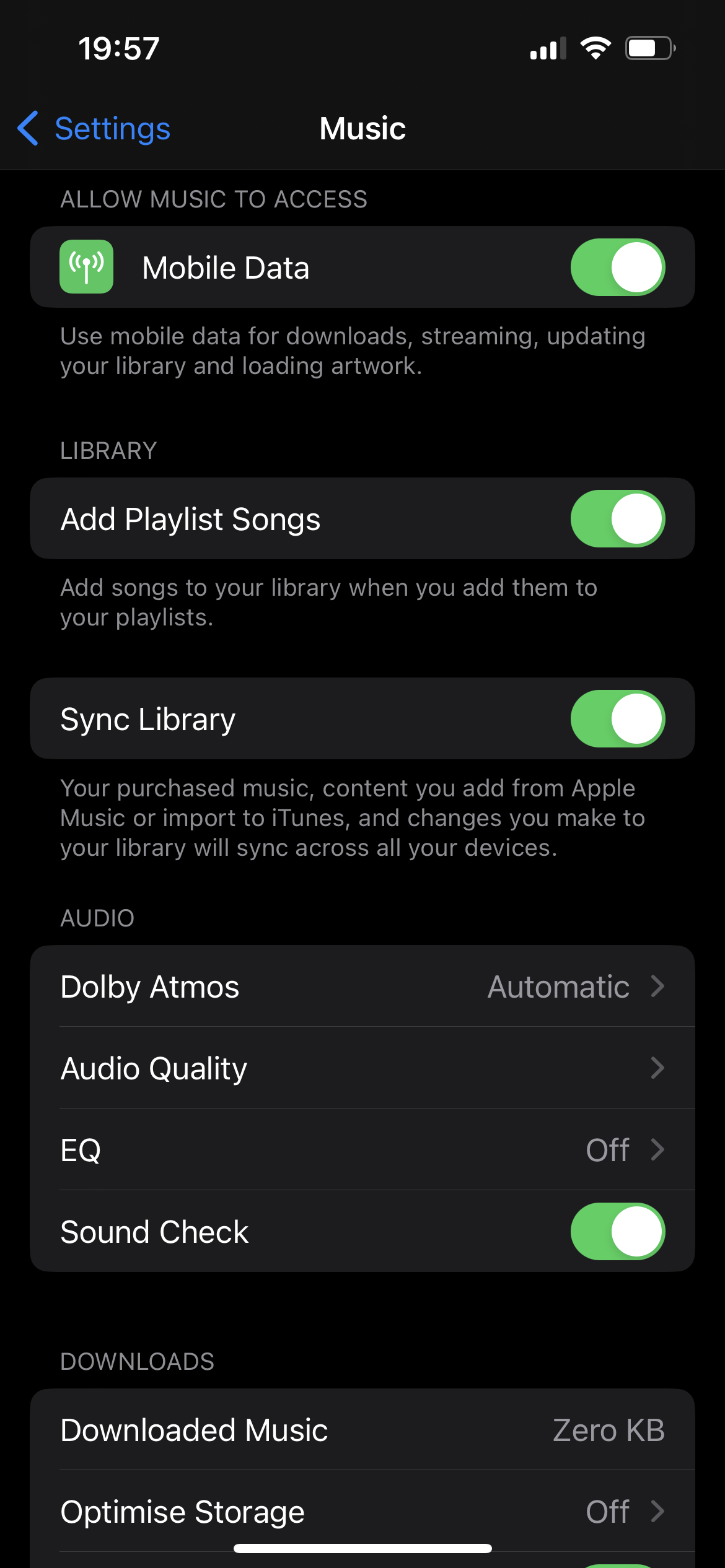 Oh, Apple Music seems to work fine at home when I’m on WiFi…