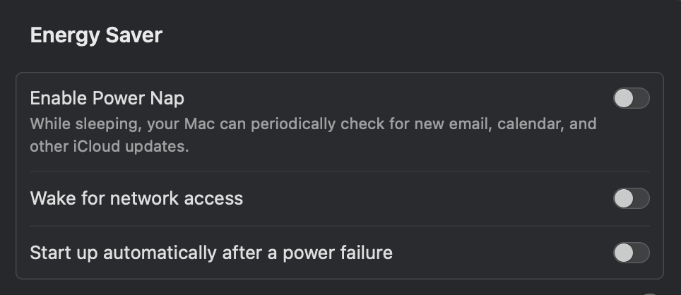 I recently updated from Big Sur to Ventura. Before, when I would go to Energy Saver settings, there would be an option called "Put hard disks to sleep when possible," and it would simply put my Mac to sleep after the designated time. But that option is no longer there after updating to Ventura.