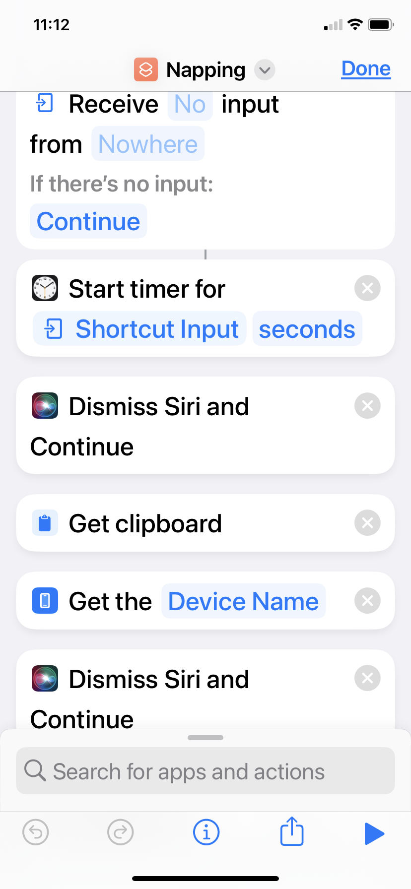 - Create a shortcut named "Napping 30". Then say: "Hey Siri, Napping 30."