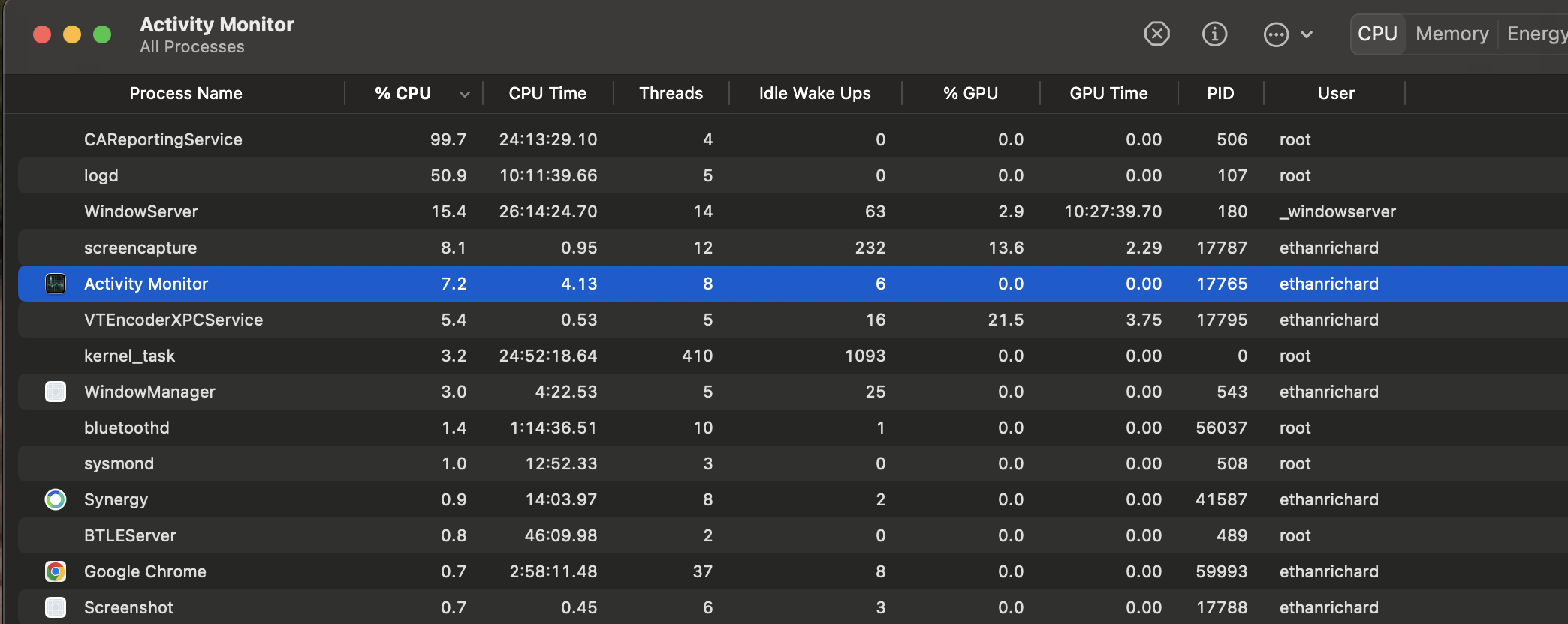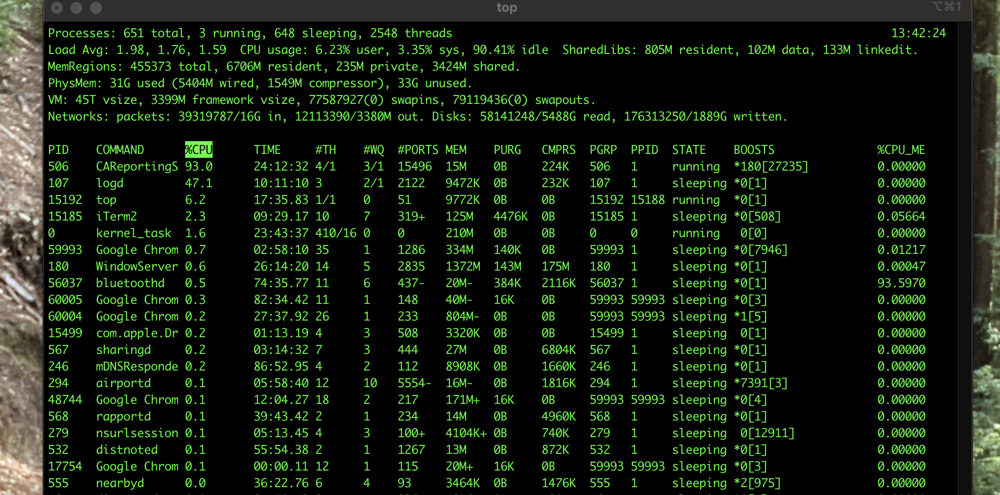 here is the activity monitor SS as requested. also i have included the output from `top` below