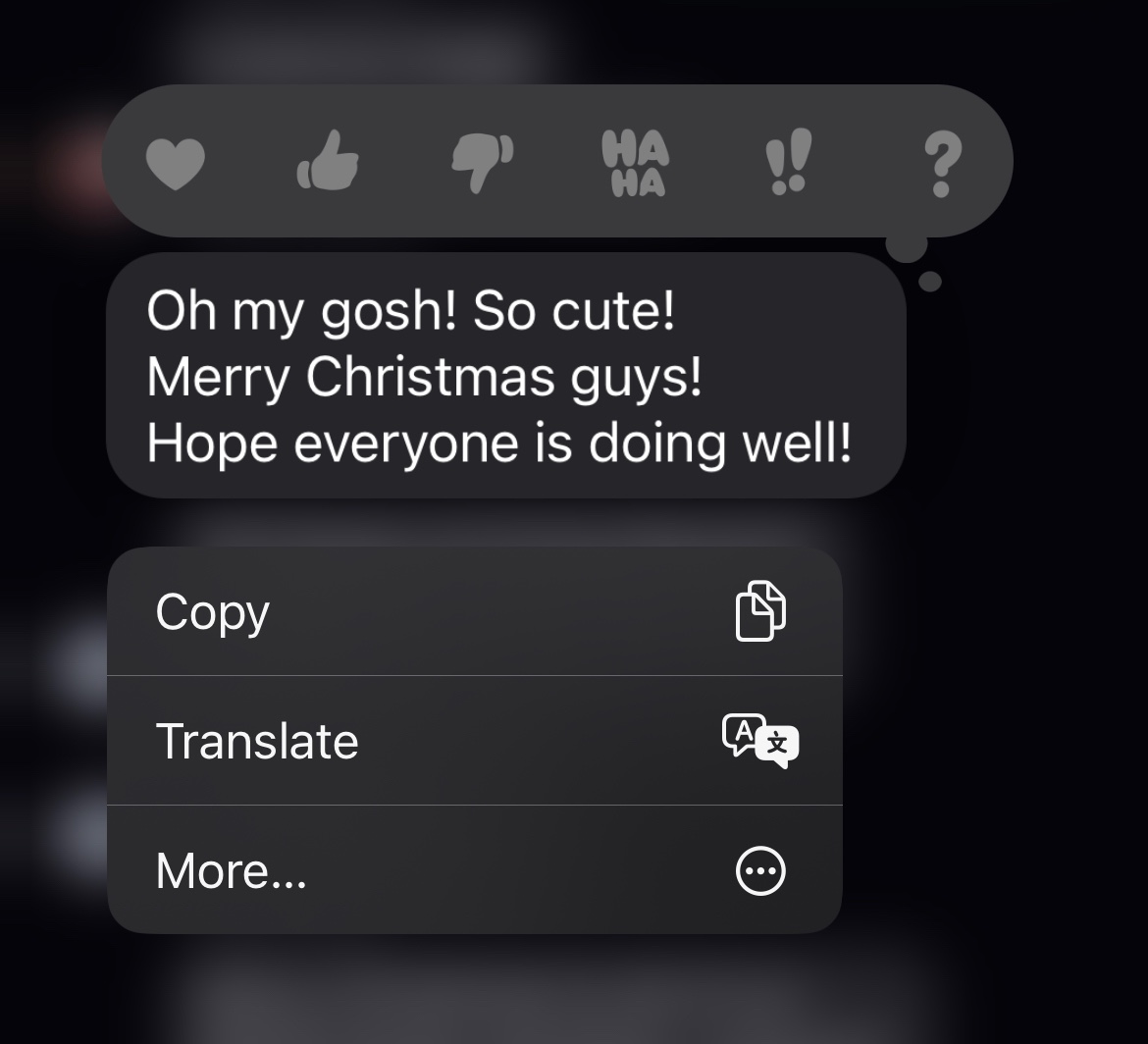 I’m trying to reply to specific message in a group text with in line message. When I click and hold the message, I don’t receive the option to reply. It only shows copy, translate, or more. The more only gives me the option to delete or forward the message. Is there somewhere that I need to turn on the option for in line messaging replies?