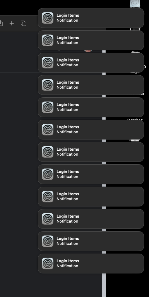5) This complete failure of the the Ventura "background items" interface is probably what is causing all these notifications. It's totally lost it's mind.