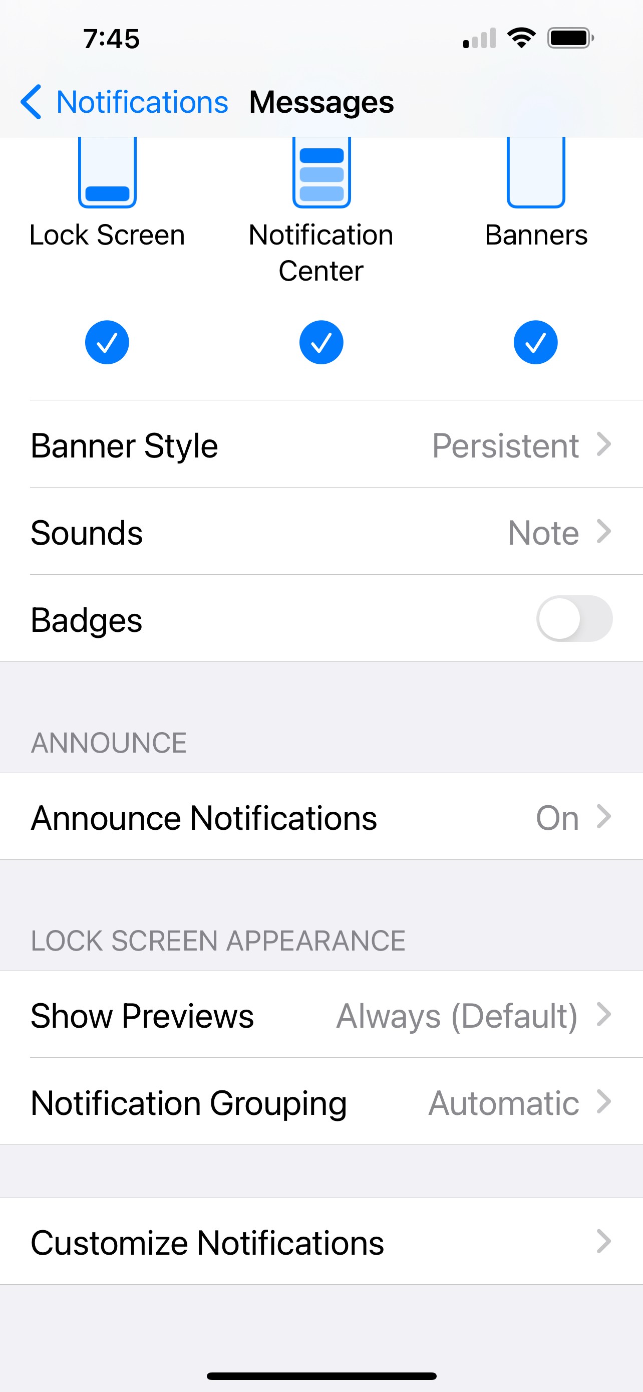 I've had an issue where when my phone is locked screen, the phone does not play a sound or display a banner when a message is received. The phone is NOT in do-not-disturb/silent mode, nor is are the contacts set to do-not-disturb. the notifications for messages are turned on default sound, and the vibrate is turned on for messages as well. The phone receives notifications and banners normally when the screen is unlocked, but if the phone screen is locked it does nothing when a message is received. (the phone receives phone calls no problem when the screen is locked. I've tried for over a year to get the messages to work. I have been on an iPhone XS Max on ATT for the last couple of years. This week I switched to TMobile and bought a new iPhone 14 Plus. Excited to have my text notifications back after a few years of not having them... and sadly, i still do not get notifications when a message is received and the screen is locked.