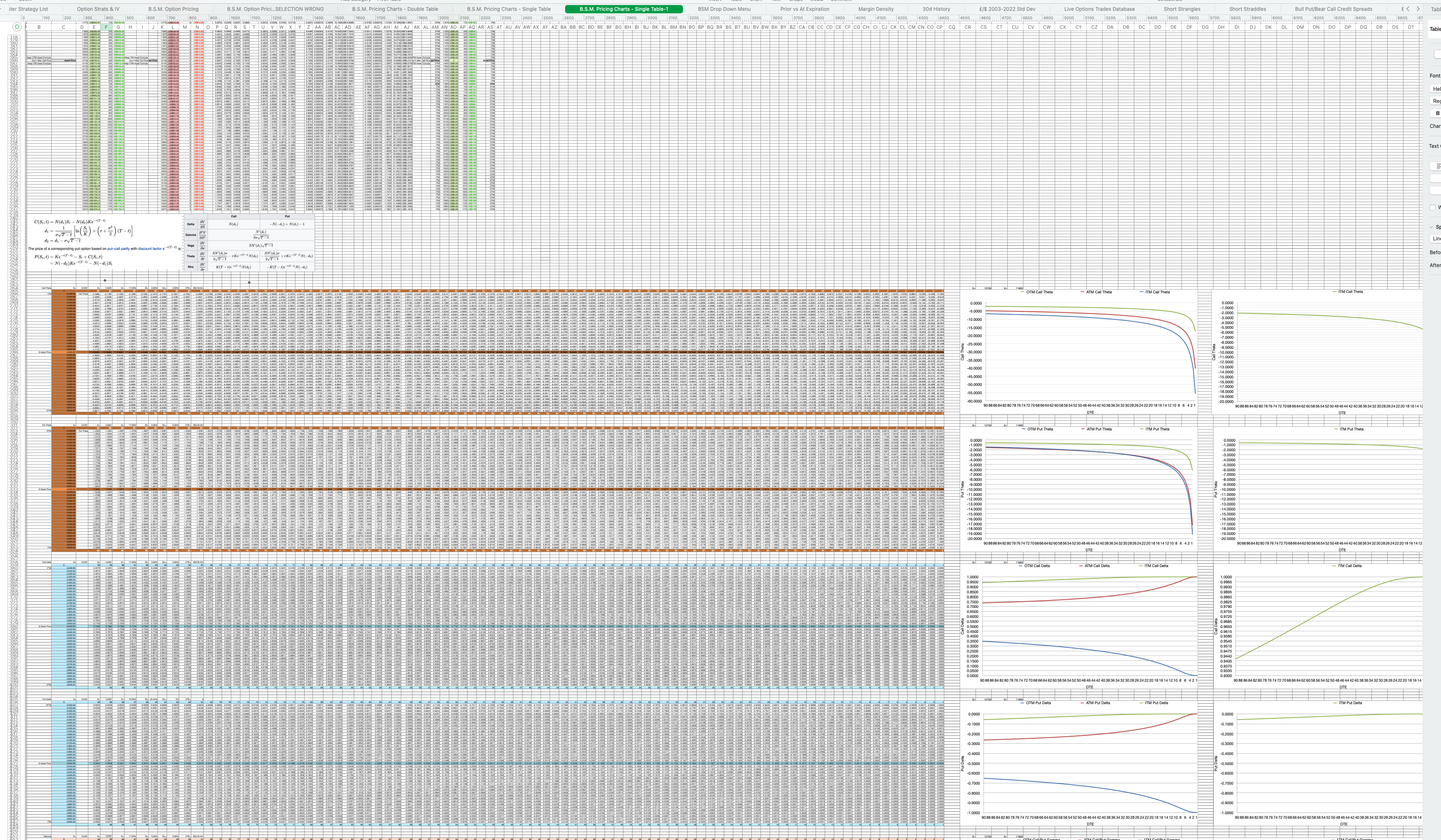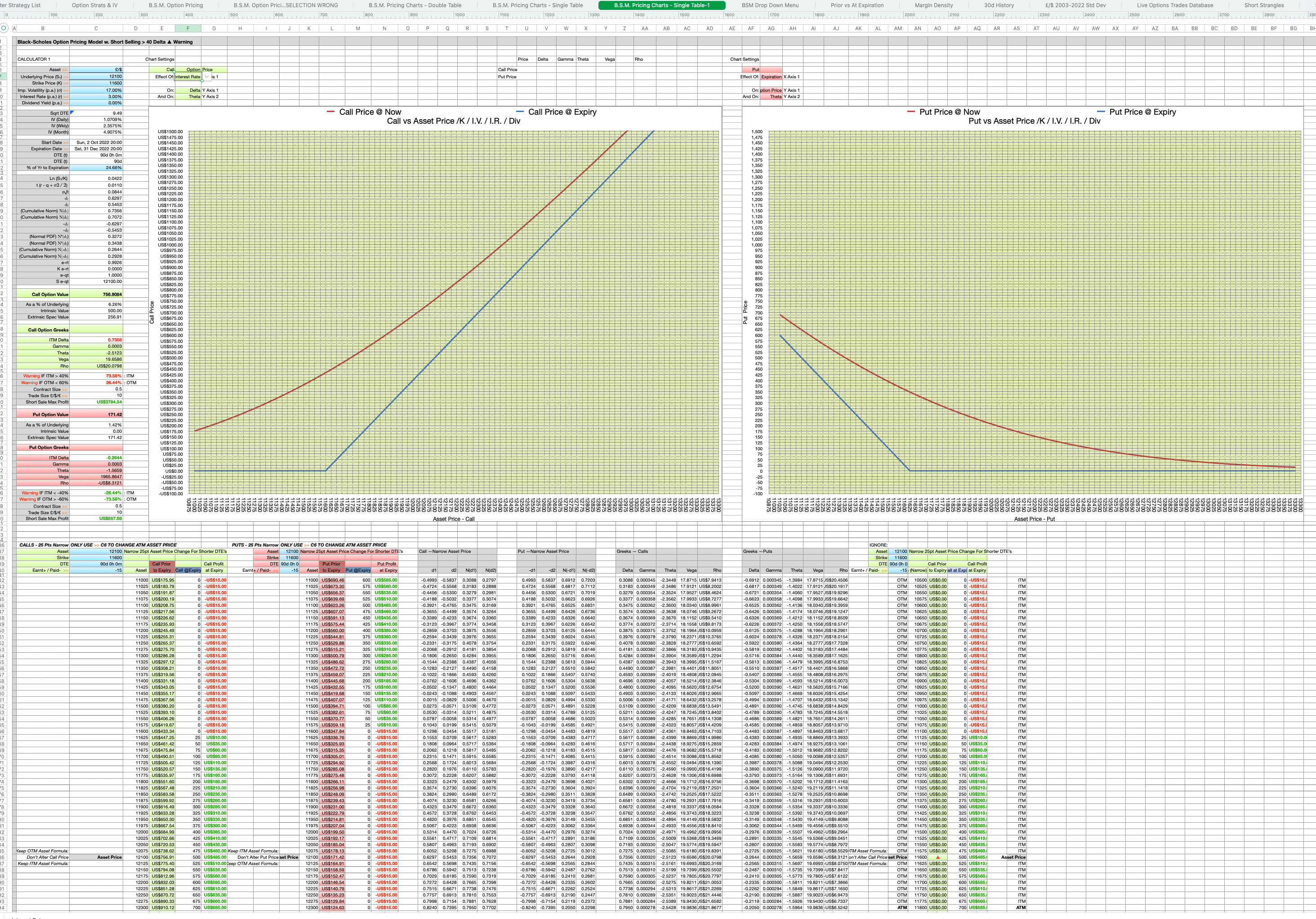 I have made my own Black Scholes Option pricing sheet (please see images) and wondered how to pull up or reference different financial tables so that my Drop Down's will produce different graphs where the X and Y axis might completely change? Eg the X axis might change from underlying price of the £/$ to the number of days left to contract expiry.