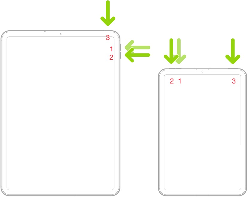 Press and quickly release button #1 - then press and quickly release button #2 - then press and hold button #3 until your iPad restarts. Release button #3 when the Apple logo appears.