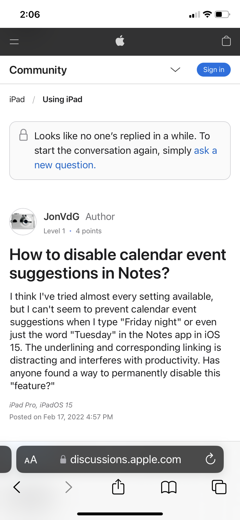 I have been recently typing in the Notes app and have been having a problem. If I type “This morning” or “Monday night” it underlines the phrase and suggest me to put it as an event in the calendar app. I have seen someone also been having this problem and ask your team, but they did not reach a definitive solution.