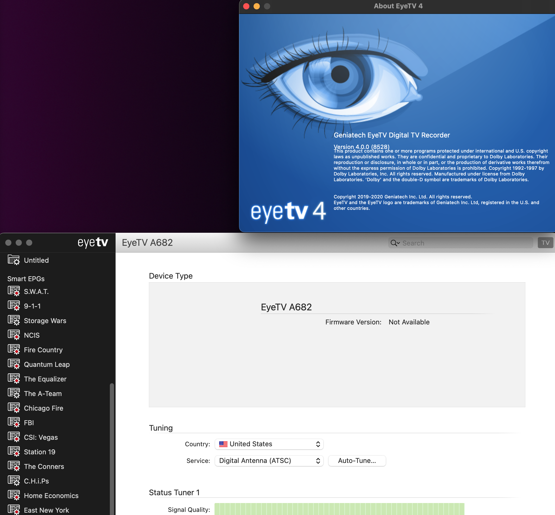 Has anybody tried to use EyeTV4 after upgrading to Ventura? When I try to launch EyeTV, there is an immediate fail and error page. I have tried removing EyeTV Helper and reinstalling it but nothing seems to work.