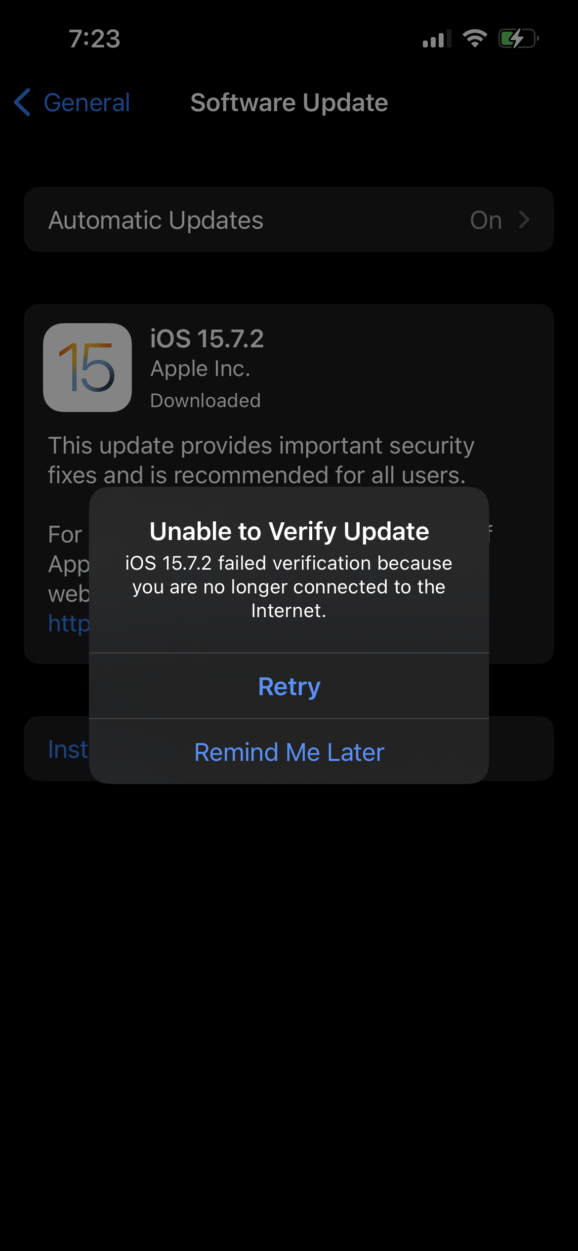 When I try to update my phone it keeps saying that I am no longer connected to the internet and it doesn’t update, Even though I am connected to the internet.