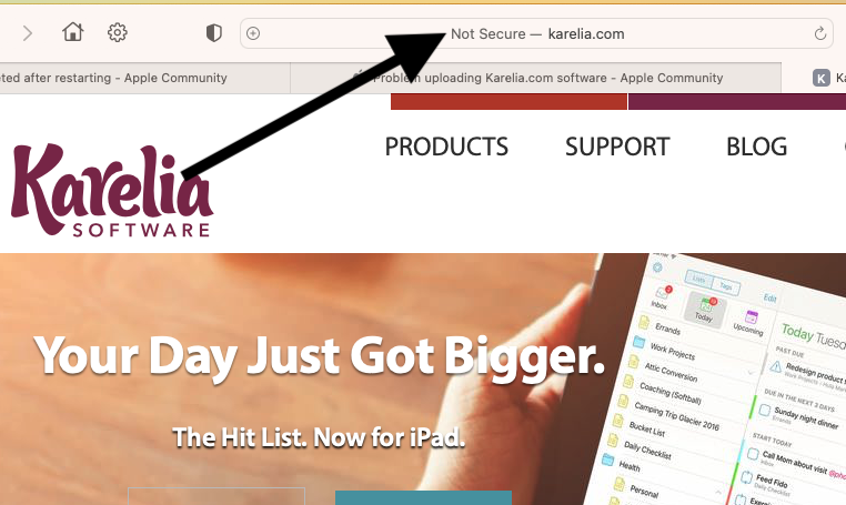 I've had Karelia software for several years until my computer crashed. I now have a new MacBook Pro. I tried to upload Karelia however safari does not recognize Karelia.com. Help!!! Please!