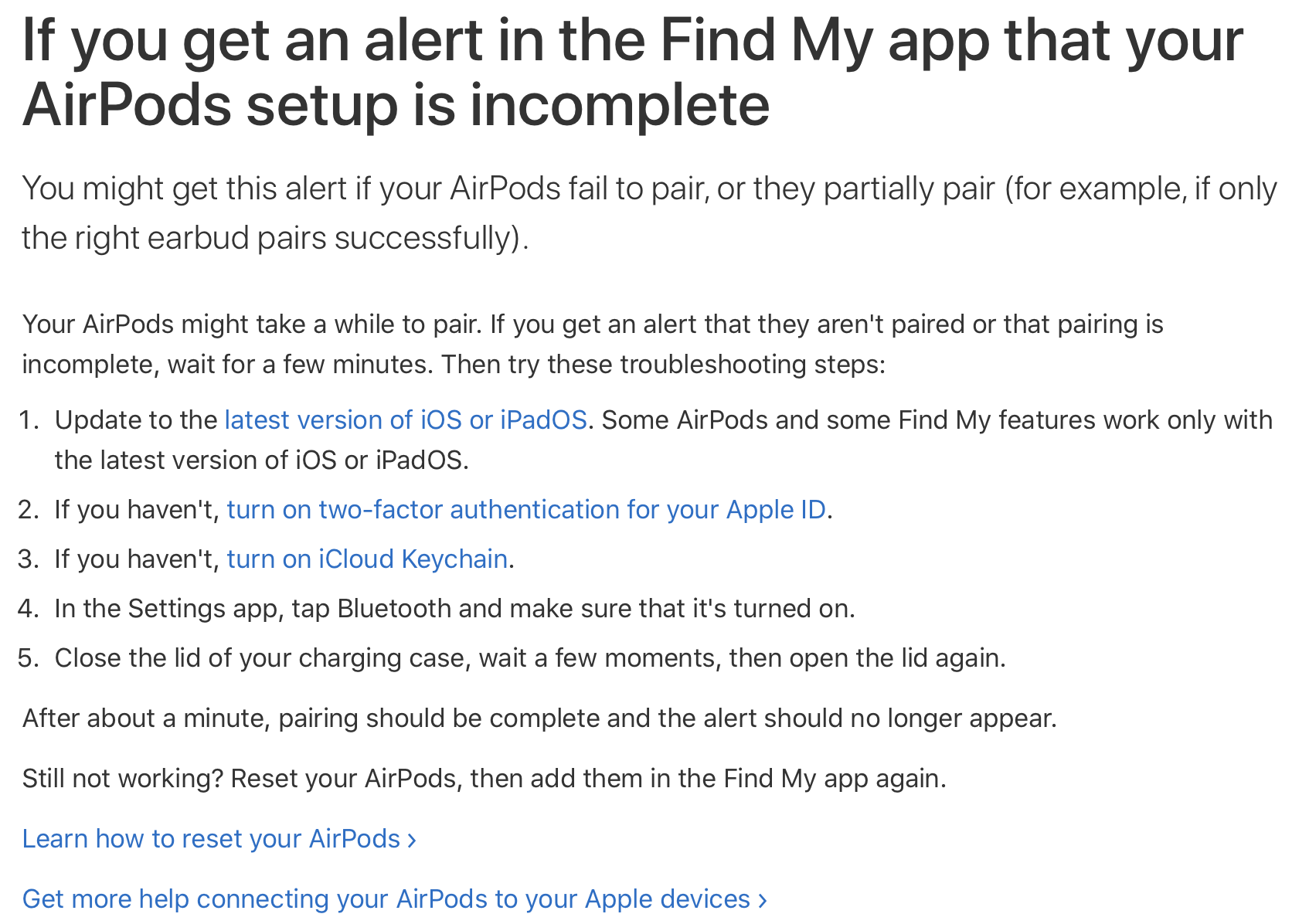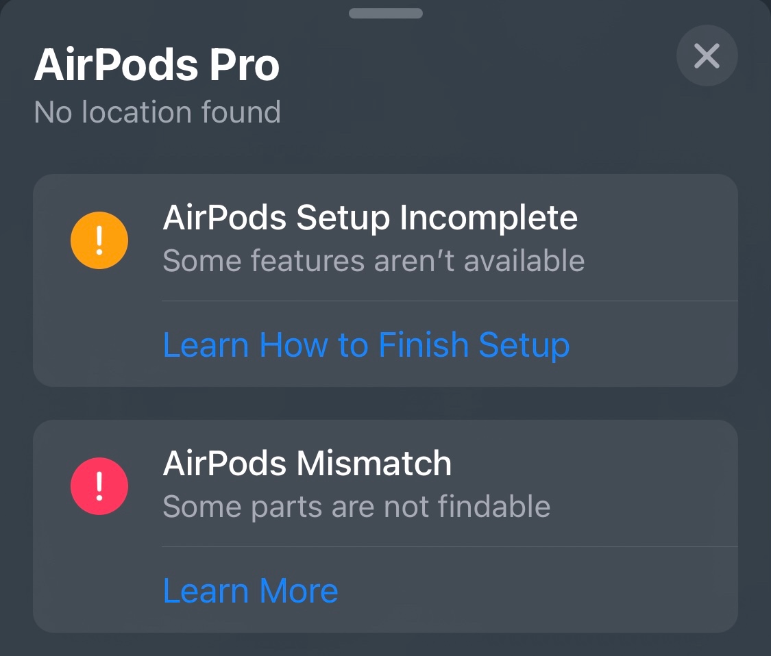 I got two notifications from “Find My” app from my airpods, Airpods Setup Incomplete and Airpods Mismatch. I’m pretty sure these are my AirPods Pro, both notifications appeared a lot of time after I bought it. What can I do?