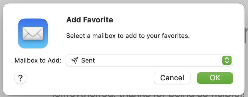 ...and the SENT folder on my Apple Mail Favorites despaired, any one with the same problem? how to set it up again please?