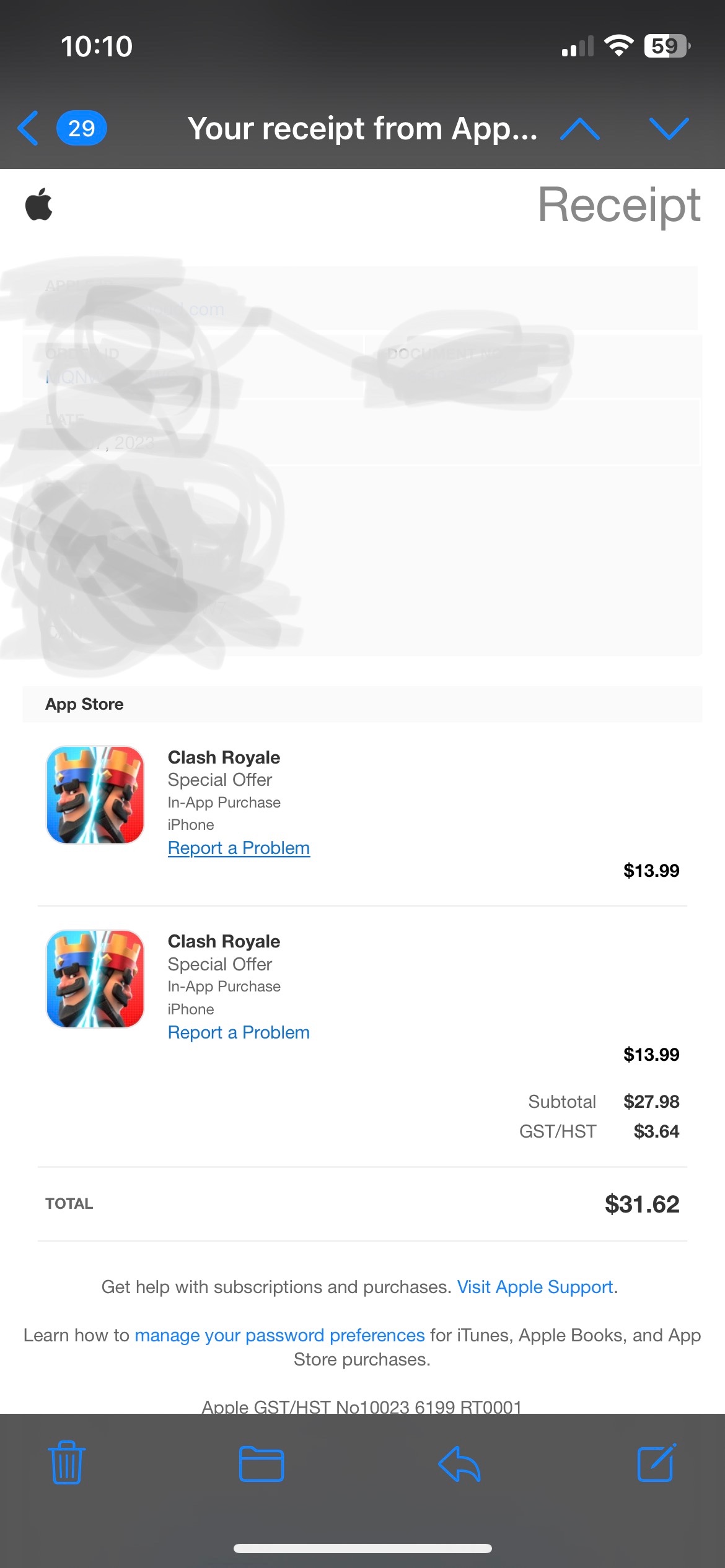 - If you only see a charge in emails or texts that are not official Apple receipts, it is likely phishing attempts ( Recognize and avoid phishing messages, phony support calls, and other scams - Apple Support ).