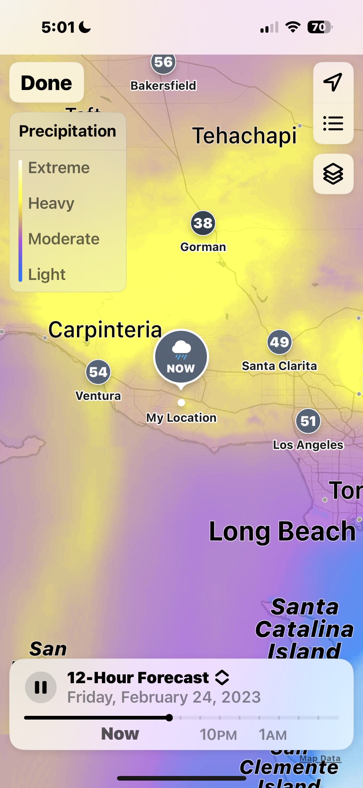 The Weather radar layer for precipitation regularly fails to load correctly on my iPhone 12 Pro (iOS 16.2). Information appears in the surrounding geographic areas but over my location (with distinct horizontal and vertical borders), the layer is blank. However, zooming in or out reveals the information. There appears to be a specific scale at which the layer is unable to load correctly. Anyone else have the same experience and able to point me to a solution?