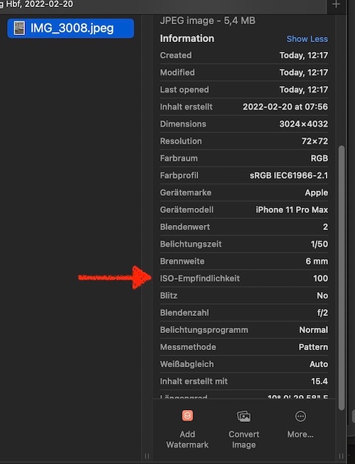 When I use "Get Info" to look at the details of an image file, JPG, RAW, NEF, CR3 etc it no longer displays the ISO value from the EXIF data stored within the file details. It did used to, but no longer does which means I now have to open each of the files in Preview and inspect the EXIF details from within that application to find the ISO value.
