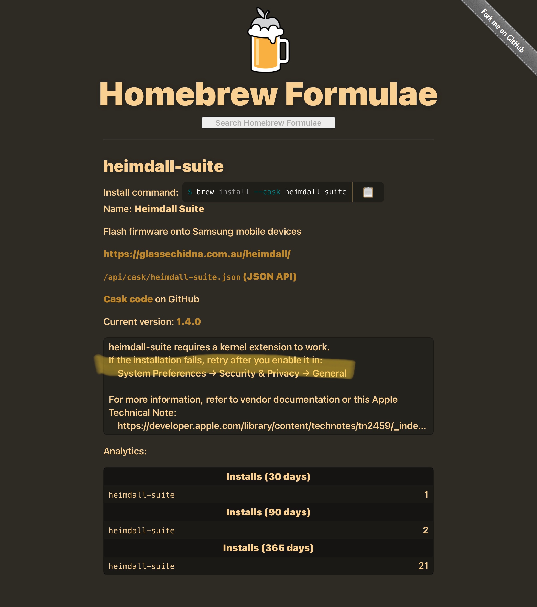 Hi there, I am trying to install Heimdall suite using brew. It fails trying to install the Cask section. Terminal output below
