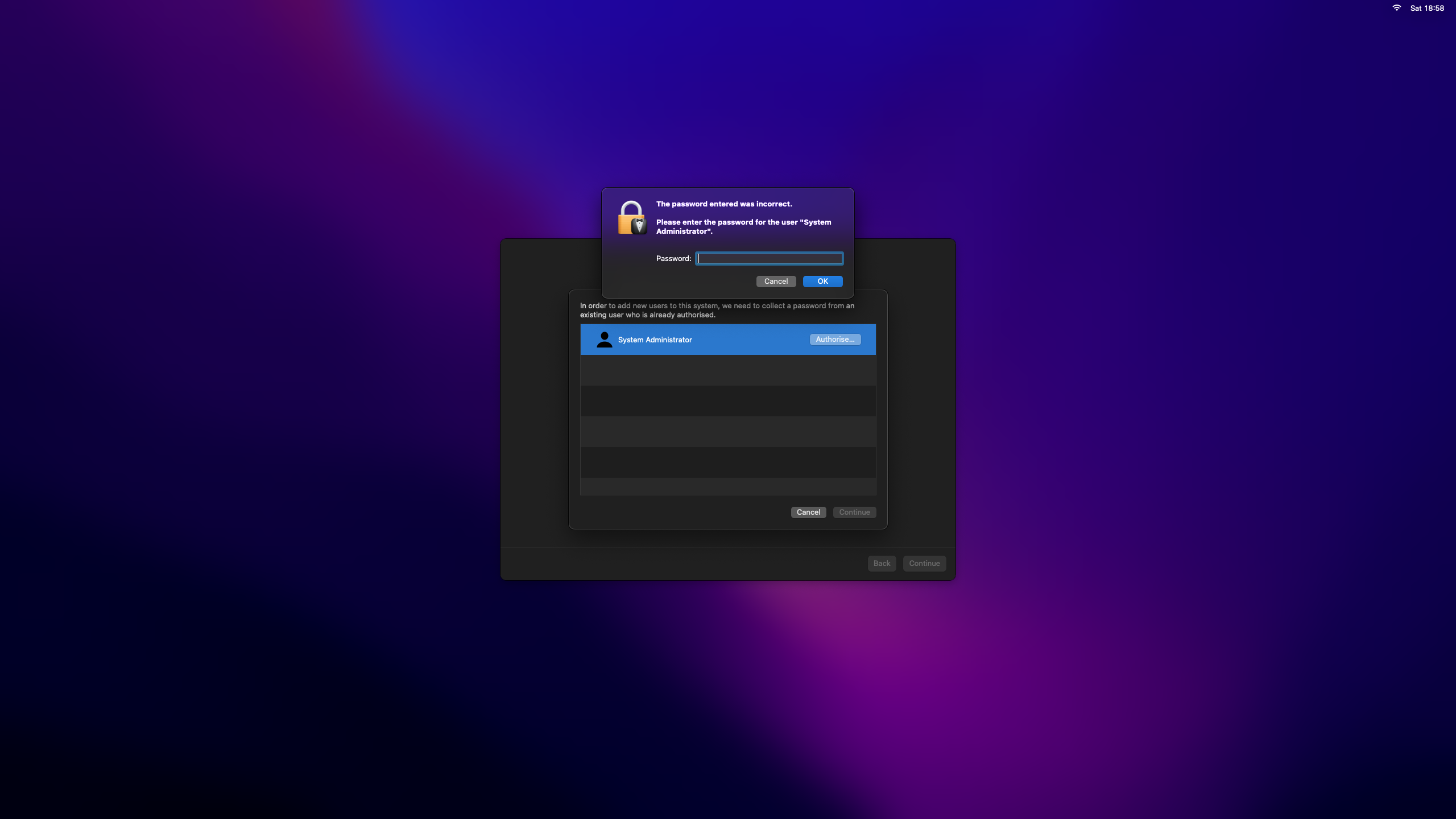 I am trying to migrate my computer content from time machine backup to my Mac Mini (i4), using Migration Assistant on the new mac mini (Monterey OS). All goes well until I get an error message saying that password is required from user 'system Administrator'. I have checked and there is no such user. The only user account is the main admin account with my own name - and entering the password for that account does not work (error message: you entered the wrong password). Anyone know what is going on?