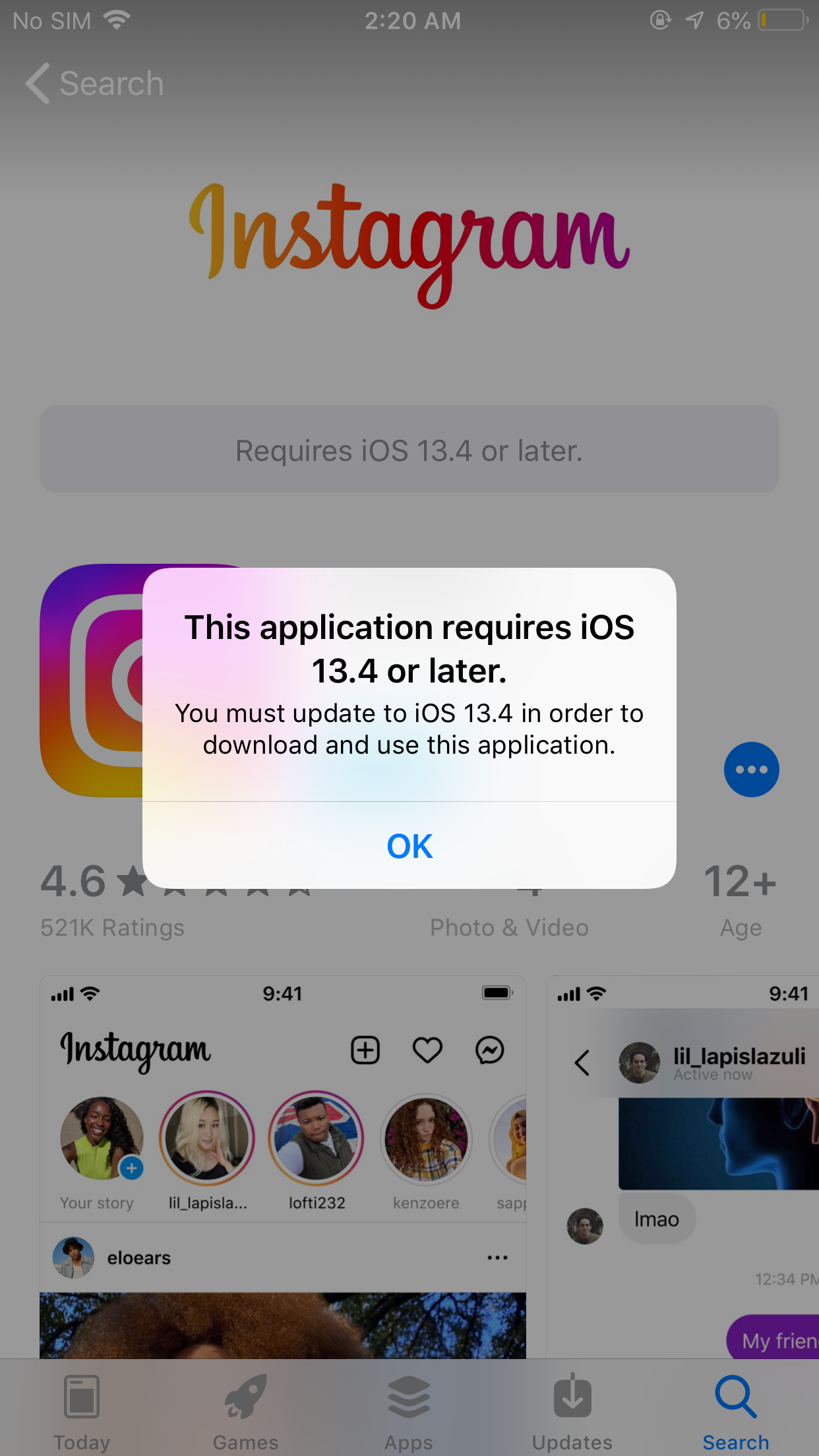 I have I phone 6 pulse but it’s asking for iOS 14 for downloading YouTube and Instagram from the App Store and my iPhone has iOS 12.5.6 so what should I do to instal them on my iPhone