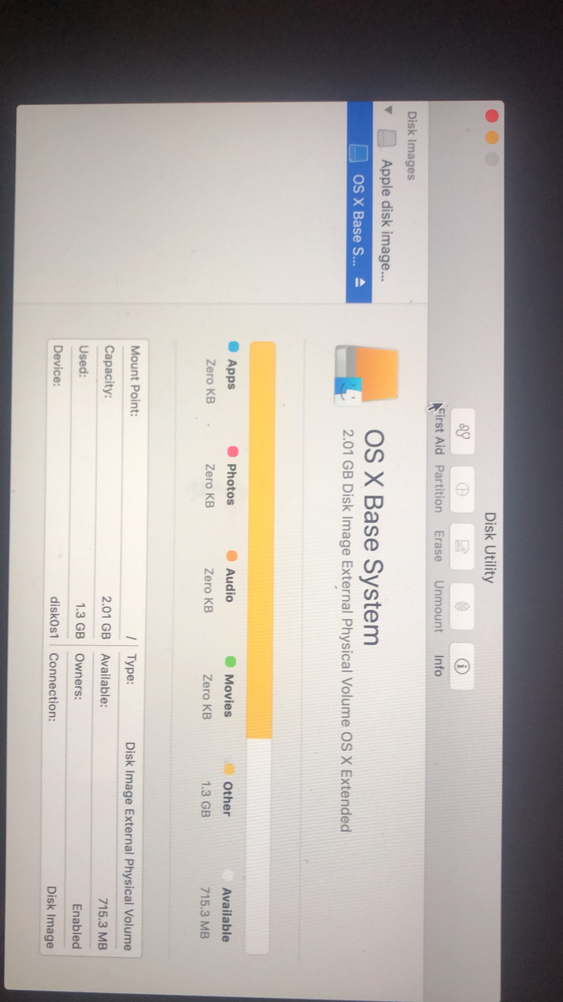 5) The Macbook then restarted but afterwards the Apple SSD was gone and the only disk in the Disk Utility is Apple OS X Base System