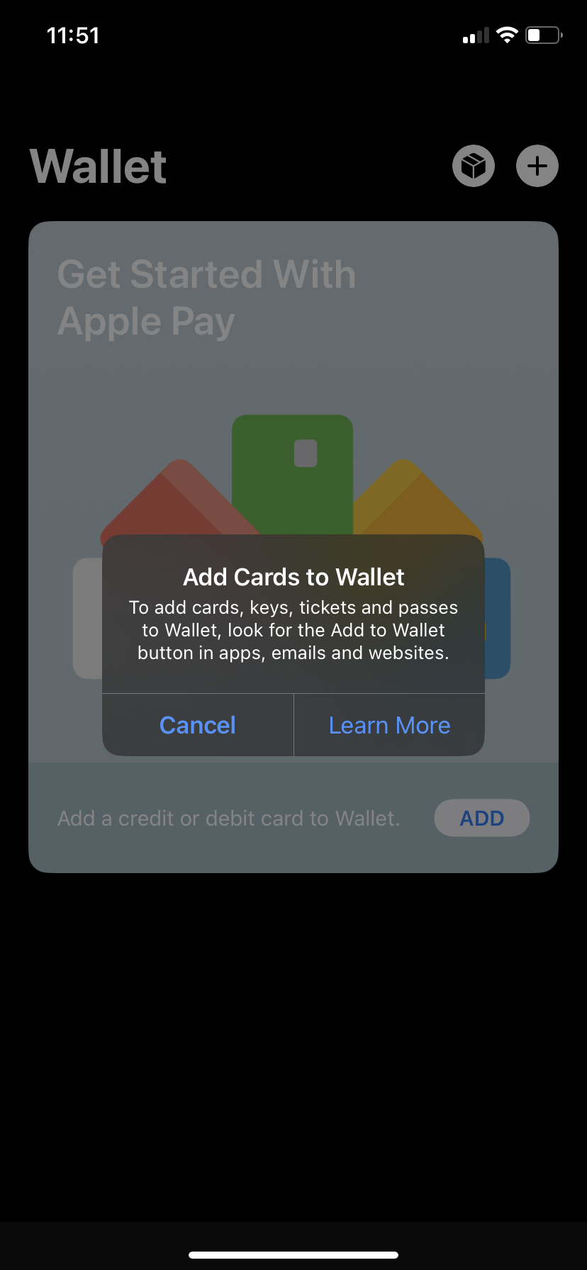 I have to add a debit card and i have tried adding the plus button on the top right of wallet. It just doesn’t work.