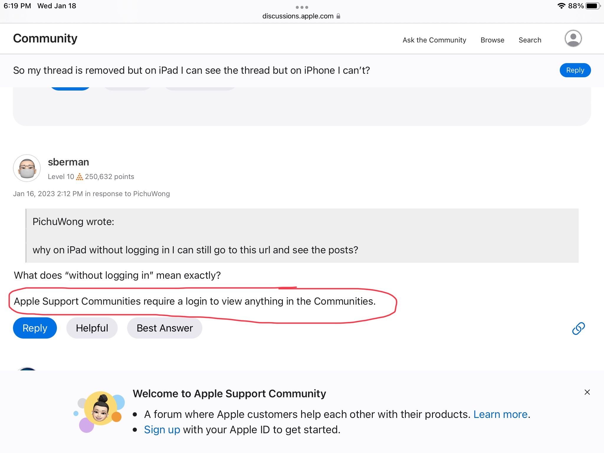 And I have beefing viewing for many years without logging in for many years? So what does he mean when he says “apple support communities require a login to view in the Communities”?