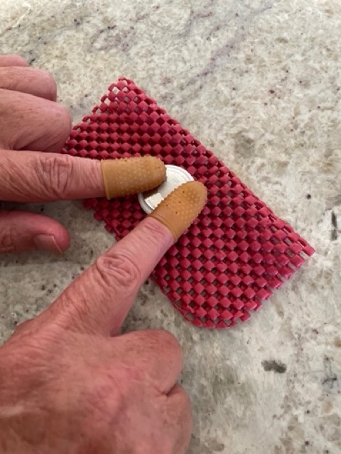 I could not get the tape trick to work but it did inspire me to find another solution. Finger cots and a jar opener!