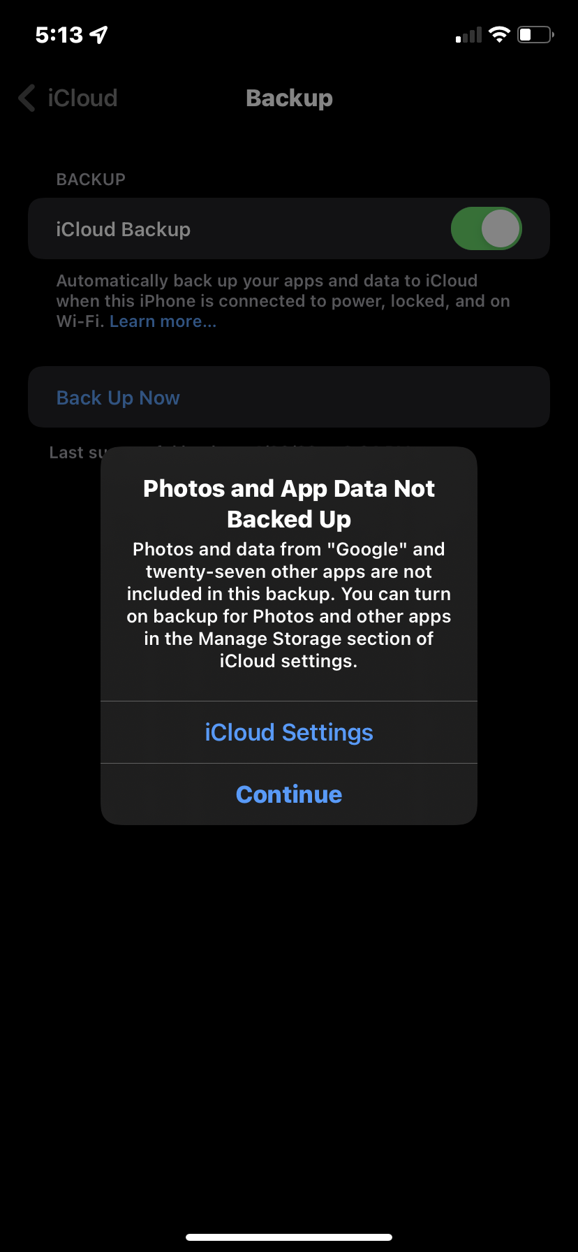 We'll be glad to help you out with your backup. Per the screenshot, it doesn't appear that the backup has failed. It appears that you do not have the mentioned apps set to back up. To enable them, you'll need to go to iCloud settings as outlined in the message, then enable all apps you'd like to include. To do that, go to Settings > Tap Account > iCloud > Show All under "Apps using iCloud". From there, you'll want to ensure the toggle beside any apps you'd like to include in a backup show enabled (green toggle). If you are concerned about Photos specifically, you'll want to tap Photos in that screen > Sync this iPhone.