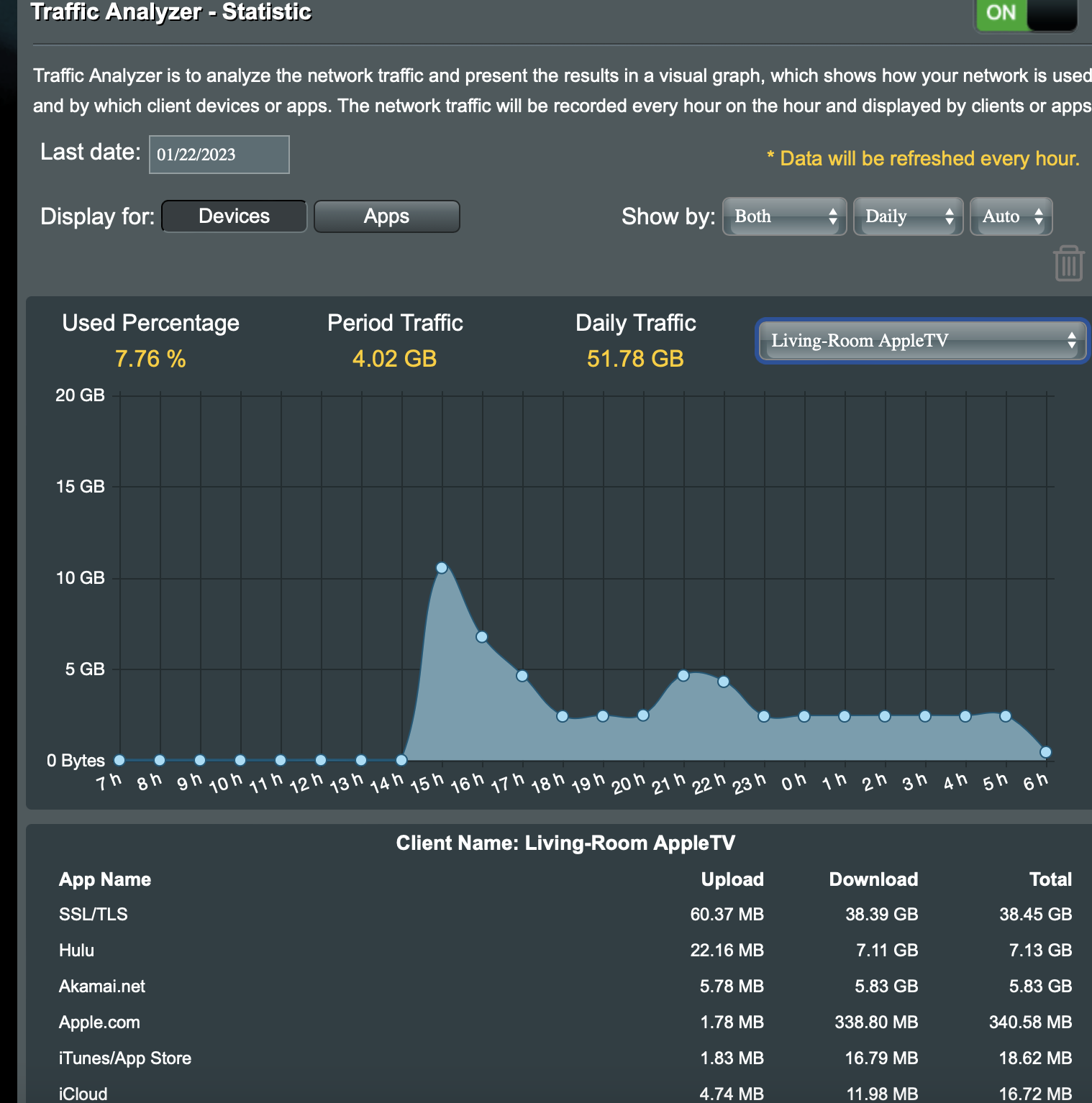 I've seen previous posts on this without clear resolution. I have two AppleTV 4K devices and they have started to use excess data while asleep. The devices were using 2.25 to 7 GB per hour while asleep. Troubleshooting my network shows issues only with these two devices. Factory reset seemed to solve it, but that was temporary and it has recurred on both devices since then. It also appears that a simple restart will solve the problem, but at this point I have to keep monitoring daily to ensure my data cap is not being reached.