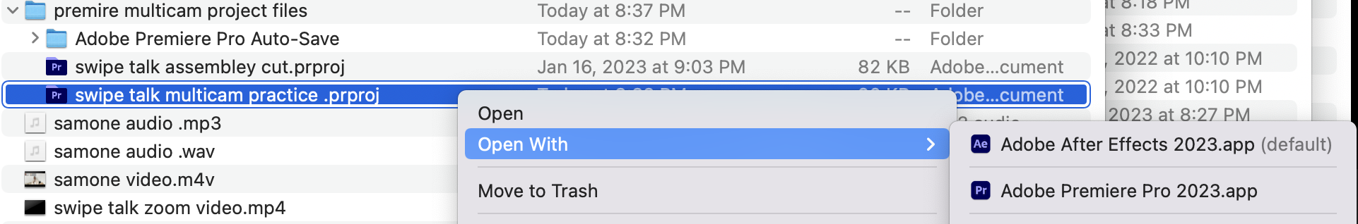 Whenever I open my Premier project it automatically opens it with After Effects. I see that its the default but I don’t ever remember setting it as the default. I’m wondering how I can remove After Effects as there default app. Its annoying when I forget to click (open with Premier) and automatically get redirected to after effects.