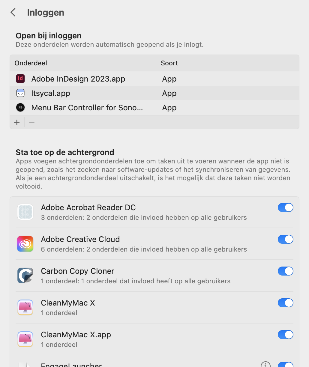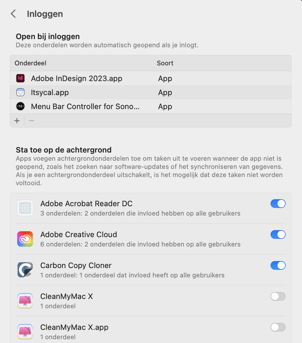 Thanks for your help. But you are still referring to the apps that are allowed in the background; I switched off Cleanmymac. But that is in the second part of the login pref pane.