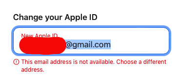 This email address is being used by another Apple ID or as an alias for you. If you haven't used this email address as an Apple ID, or as an alias, please Contact - Official Apple Support for further information and change your Apple ID password