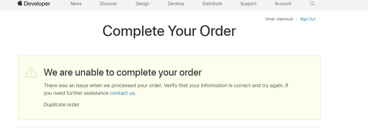 Hello ~ That message seems to indicate that it is a duplicate order. I would suggest that you click on the blue “contact us” and go over it with the appropriate person/s. Good luck.