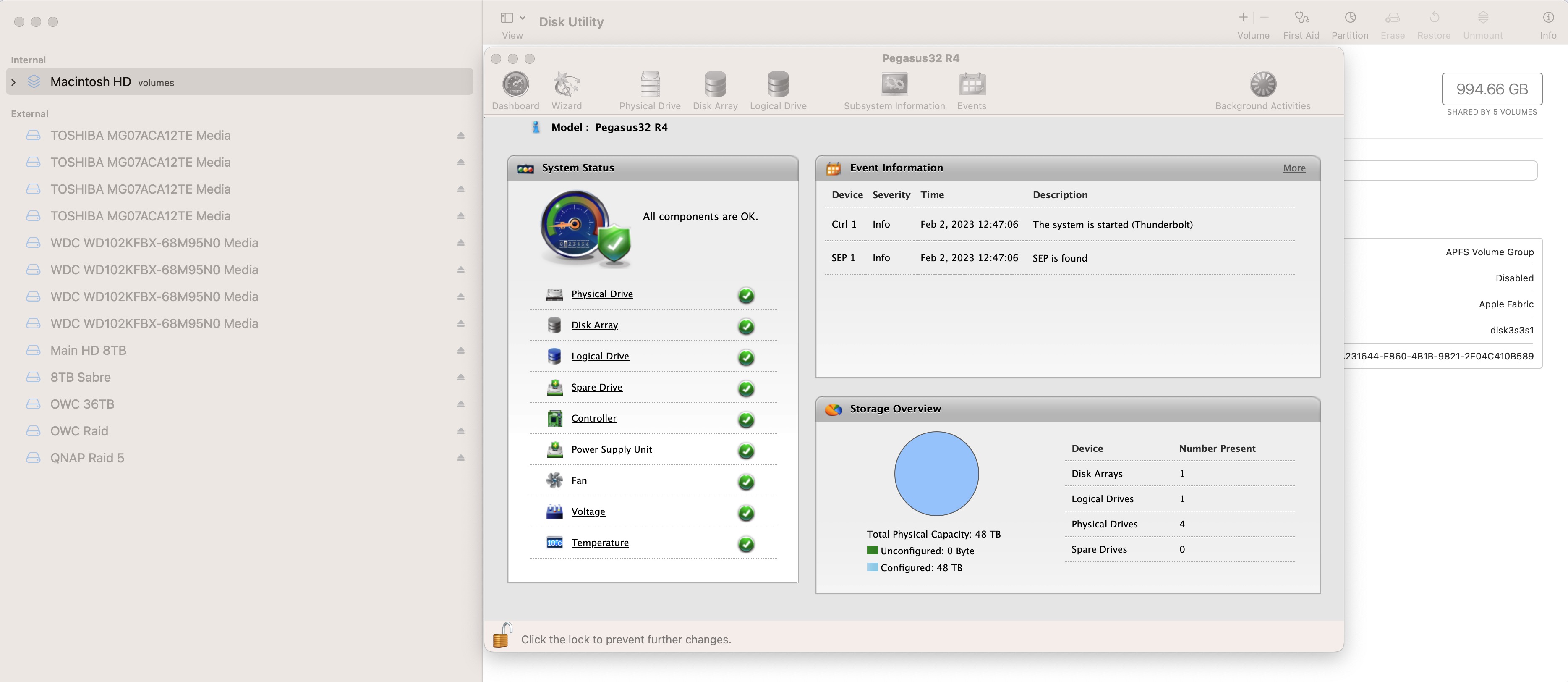 Note: Shortly after a restart, I am still seeing a Notification of a hard drive in one of my OWC Ministack boxes being ejected improperly. When I check in Finder, the drive is mounted (since 13.2.1). This did not happen after I installed macOS 13.3, but did when I restarted later in the day for the Studio Display update.