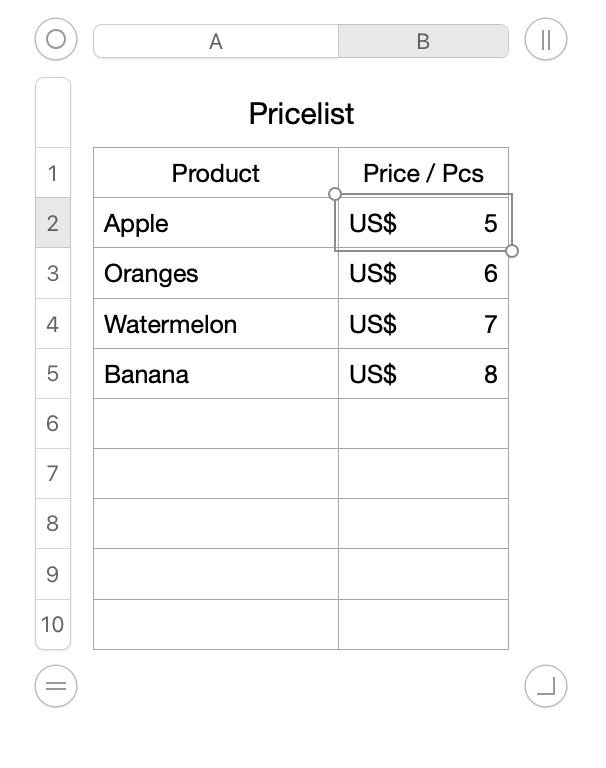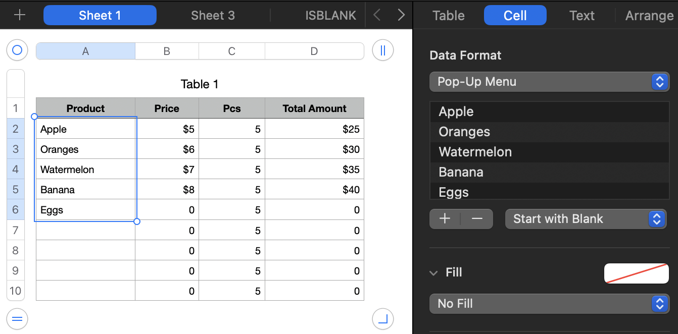 Adding value on the next column based on the Pop Up Menu in Numbers