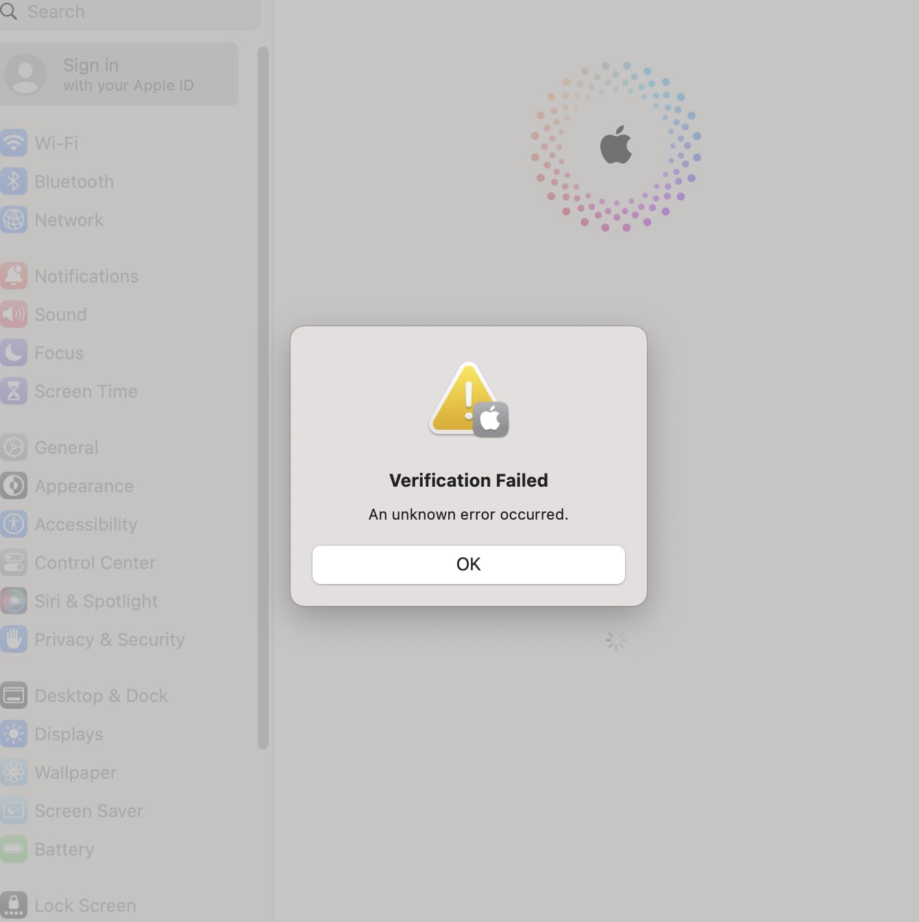A "Verification Failed" message is used in various scenarios which could be either a communication issue, or a problem with your account. See if the suggestionns in this document help: If you can't connect or sign in to iCloud - Apple Support