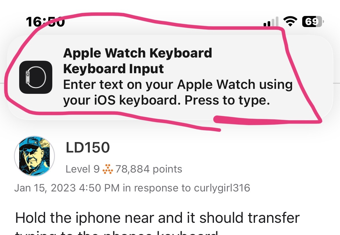after a lot of cursing , I noticed that my Iphone 8 had popped up a window where I could type in to the "skribble" box on my watch - very helpful feature I did not know existed!