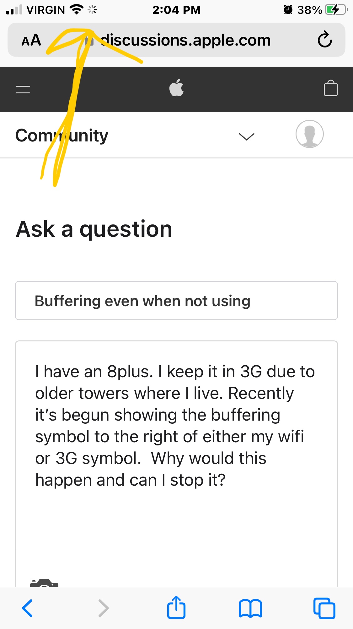 I have an 8plus. I keep it in 3G due to older towers where I live. Recently it’s begun showing the buffering symbol to the right of either my wifi or 3G symbol. Why would this happen and can I stop it?