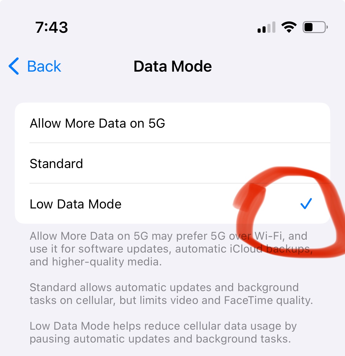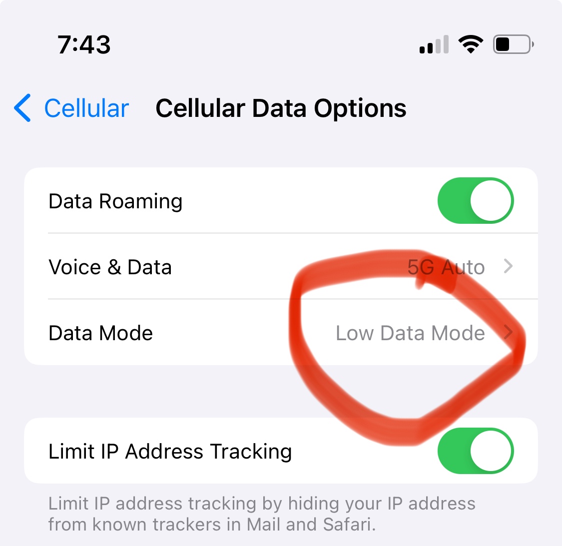 I also made sure in the cellular settings I have "Data Mode' set to Standard. I had it at allow more data on 5G.