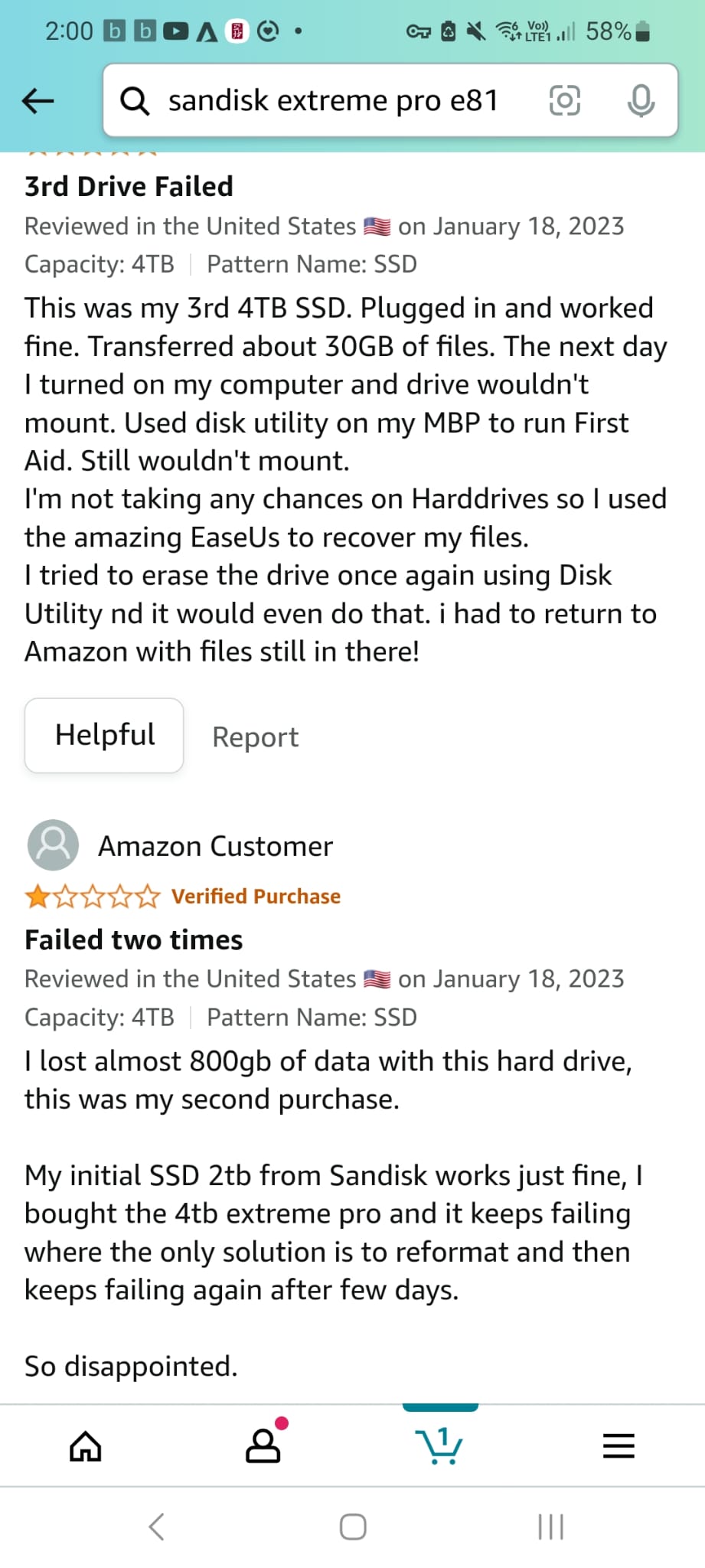 So, there has been many reviews on Amazon and B&H reporting that the Sandisk Extreme PRO (E81) failing after mounting it for the first time.