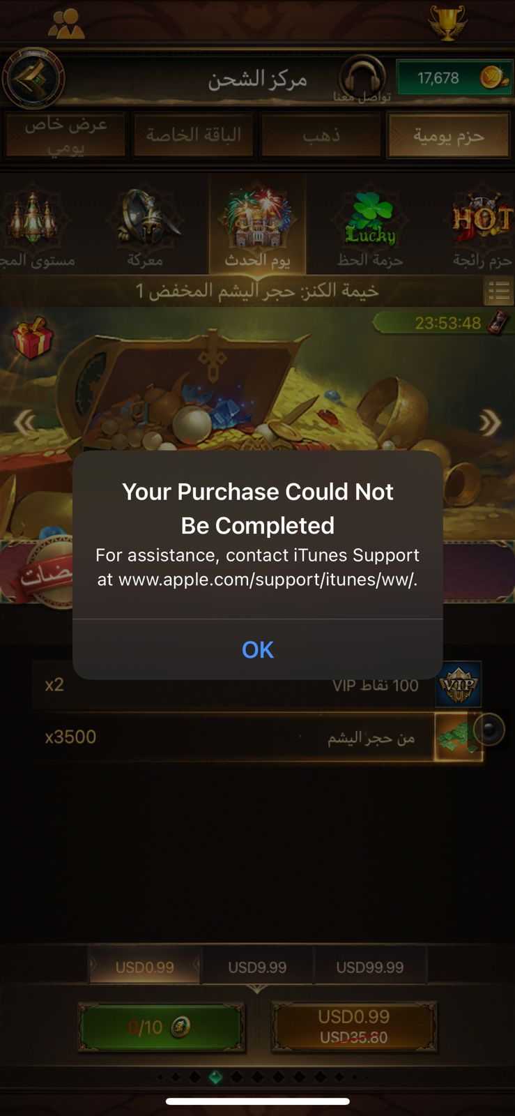 I'm trying to purchase on a game that I play but my phone keeps sending me that there is an issue with an old purchase