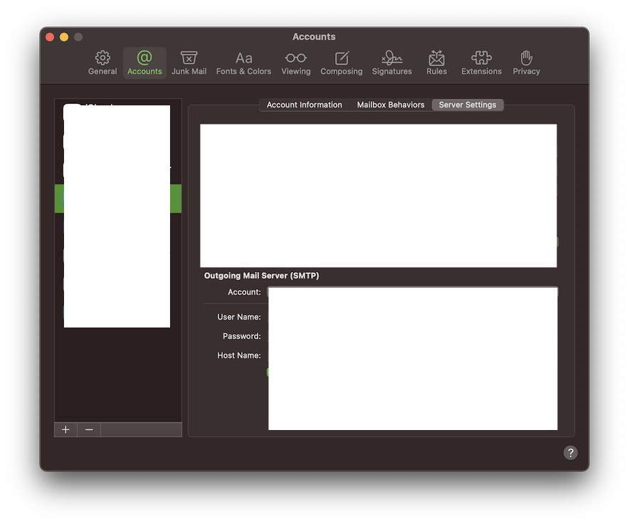 DON'T choose Mail->Accounts, but Mail->Settings: