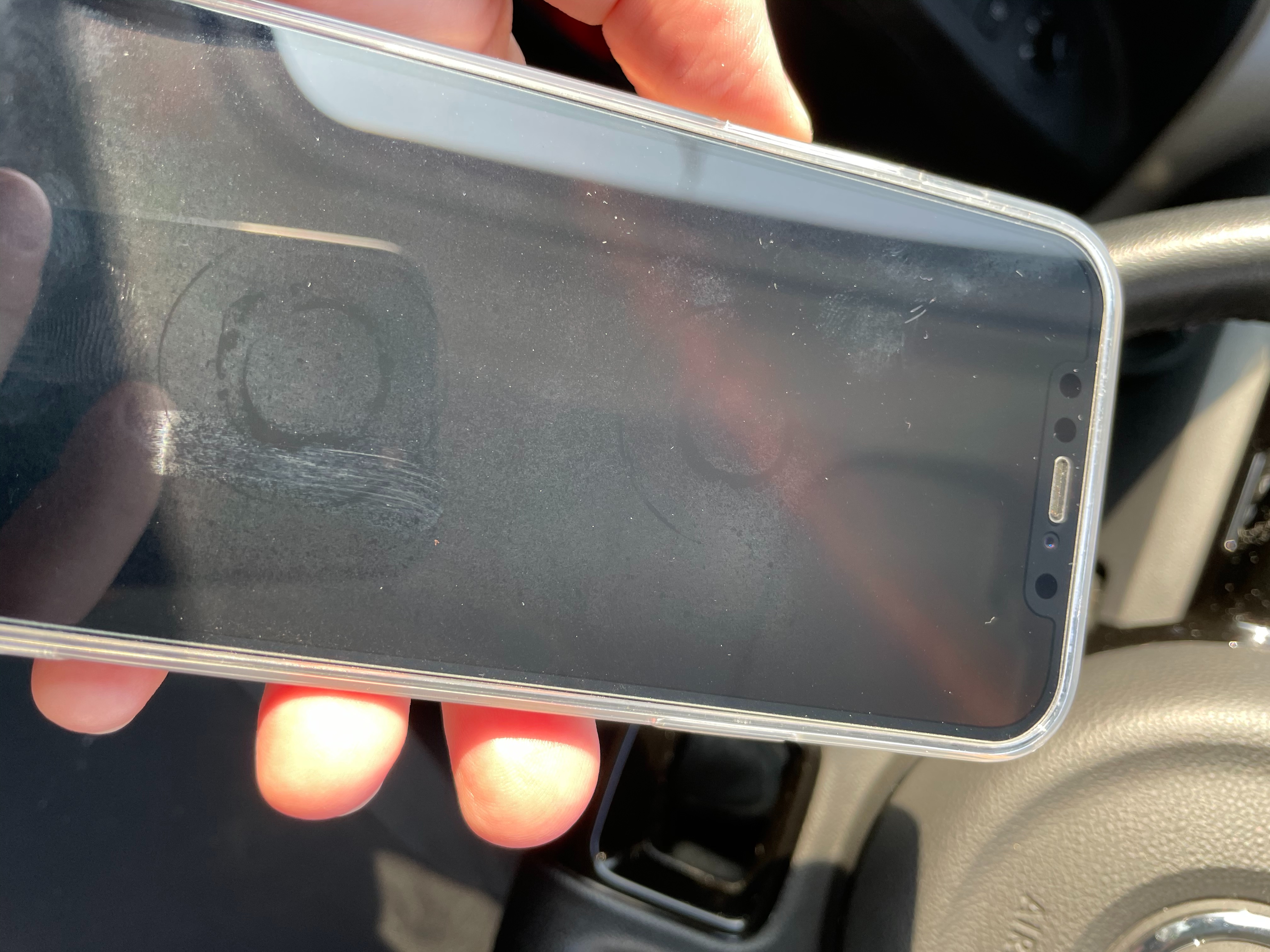 I bought an iPhone 14 pro max recently and I've been noticing these weird circles on my screen whenever it's black and tilted at a certain angle. They do disappear for a while when I rub the screen but then they appear again. And even when I switch off my phone, I can still see them. What are these? How can I get rid of them