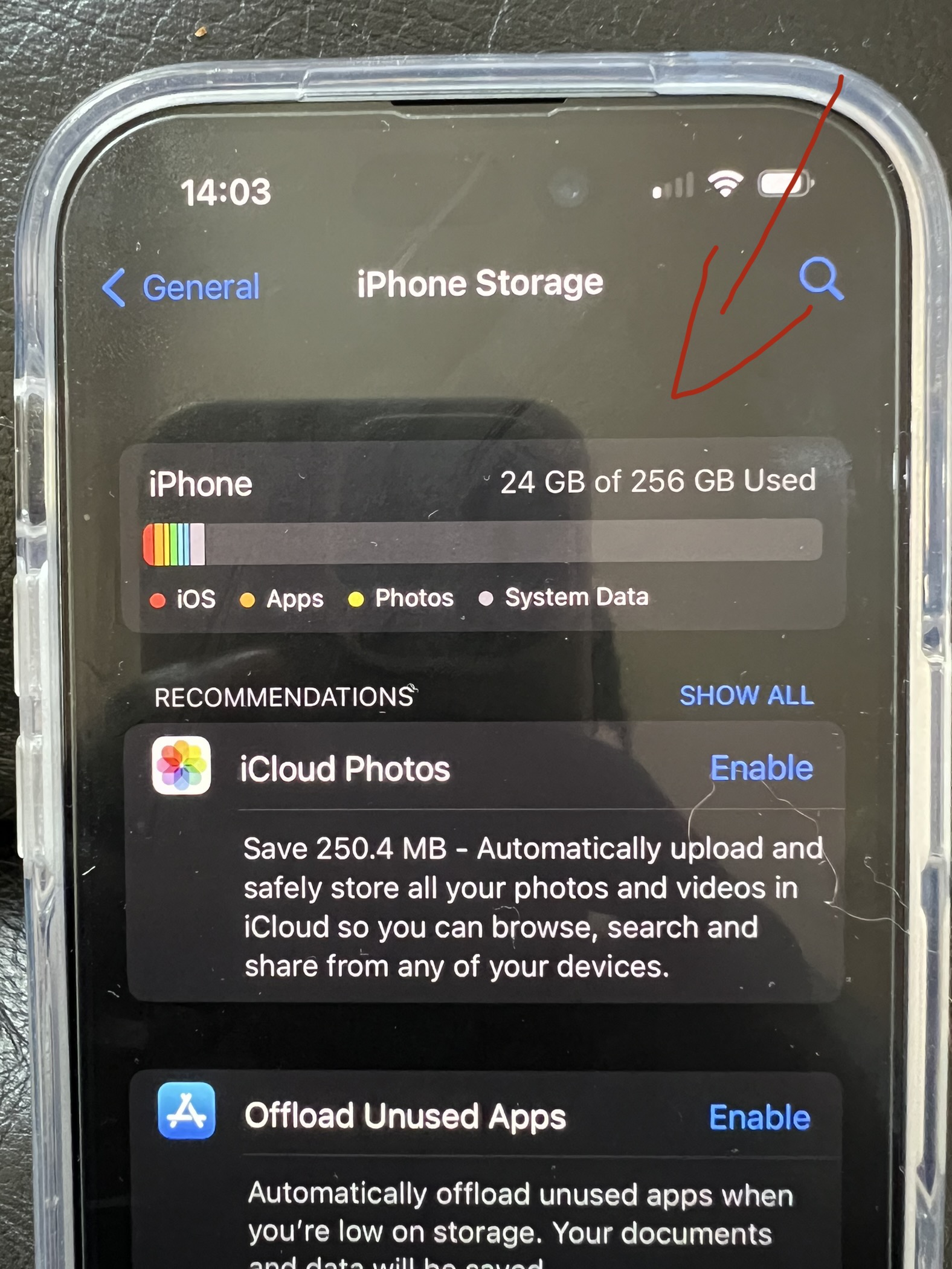 Now before you say Icloud and storage. Keep in mind that we have 2tb of storage both on the iphone 14pro and the 11. So that’s not even possible.