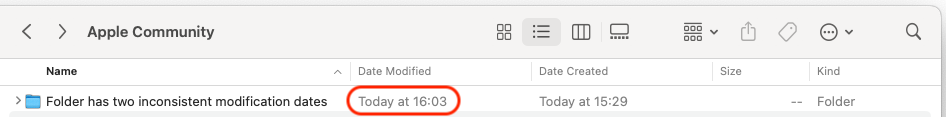 - When I add a file to a folder the ‘Date Modified’ value changes to the current time as expected.