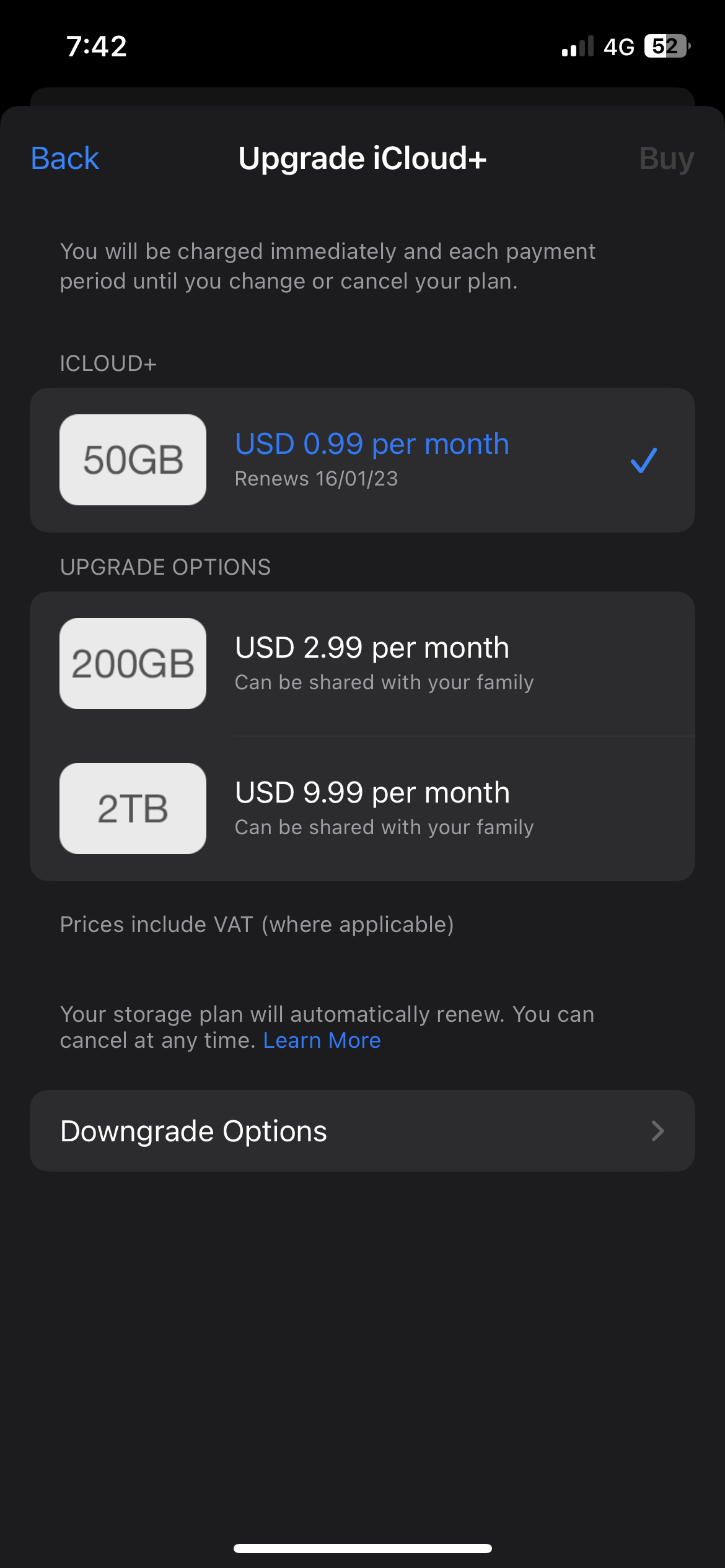 "Icloud +: Hello everyone, it's been already 10 days since I am trying to downgrade icloud storage. I was using 0.99$ package but I dont need it anymore, i tried downgrading on iPad, iPhone, PC everything!!![...]"