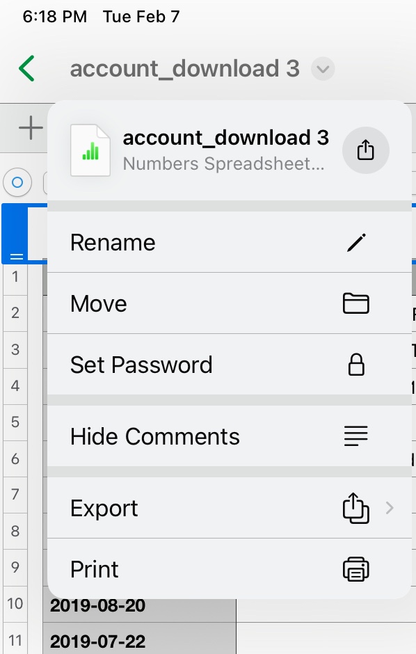 How do I print from iPad in numbers without wrench 🔧 icon?