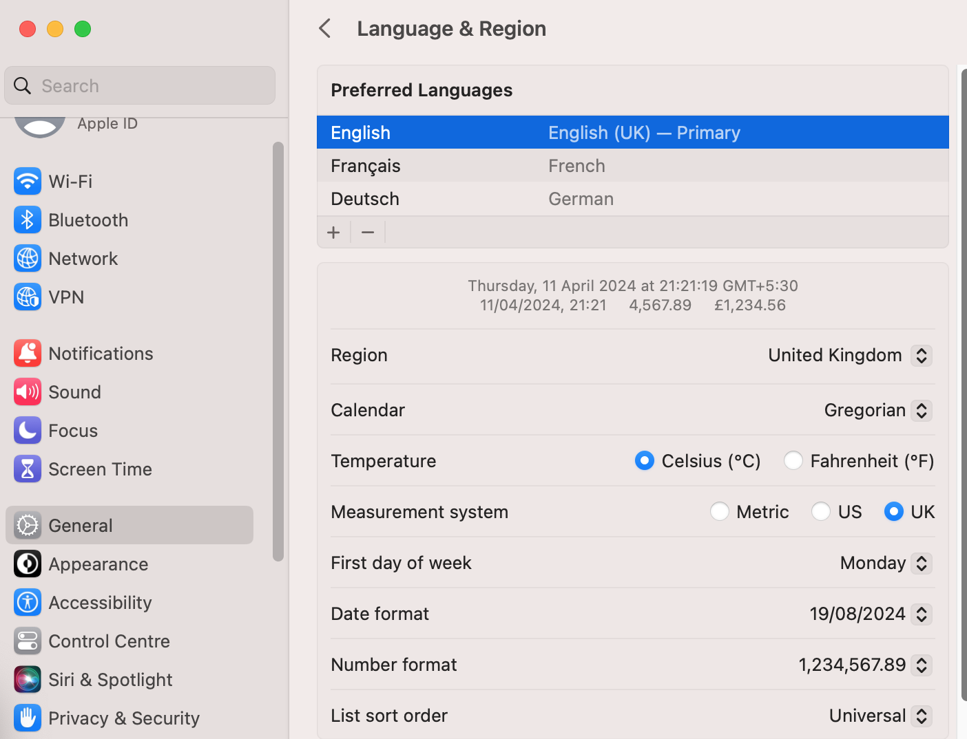 System Settings > General > Language & Region > + English as primary