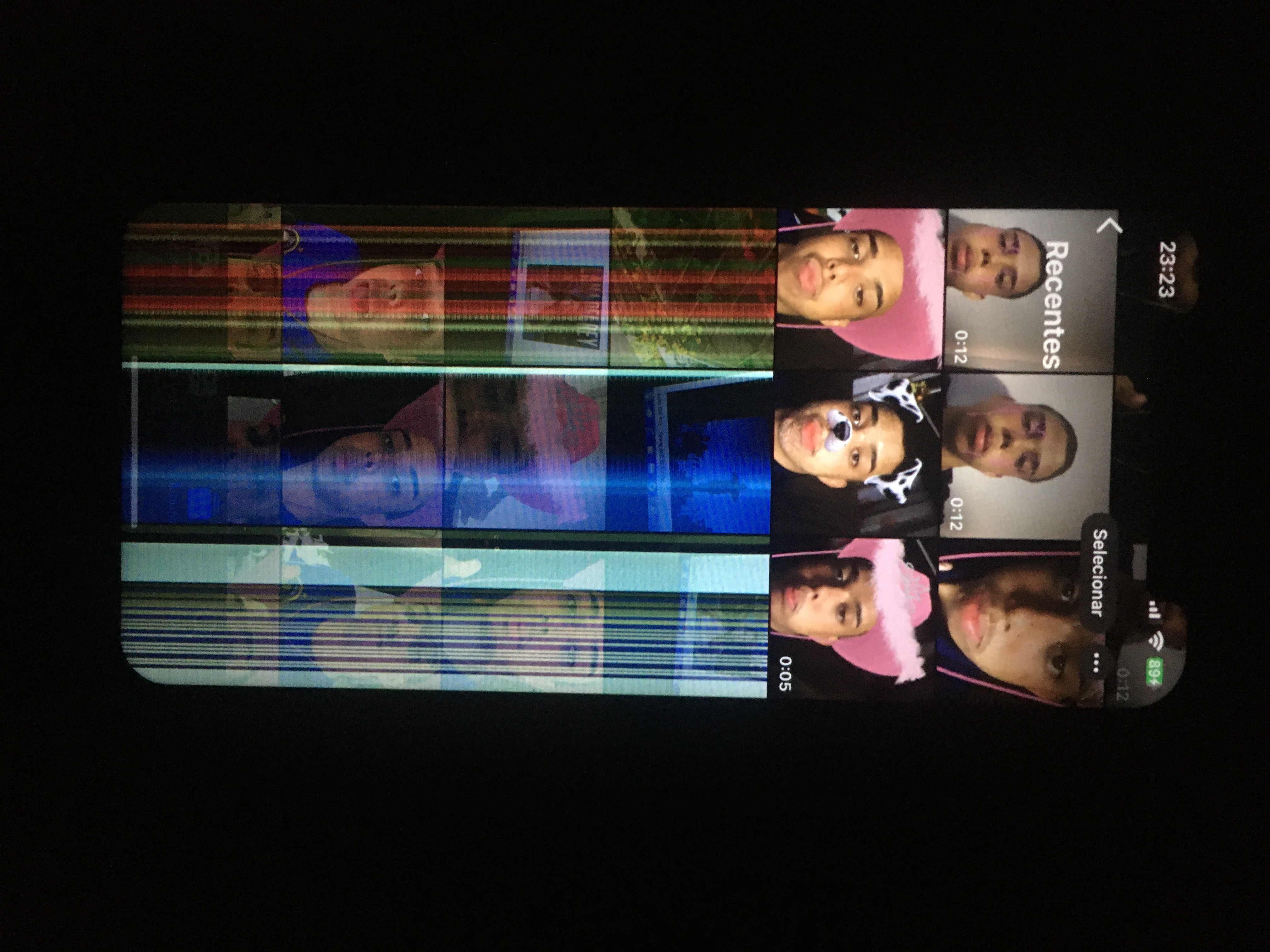 Olá boa noite gostaria de fala que quando eu entro na galeria do meu iphone aparece essas listras coloridas, ai quando eu saio volta ao normal gostaria de saber qual é o problema me ajudem!
