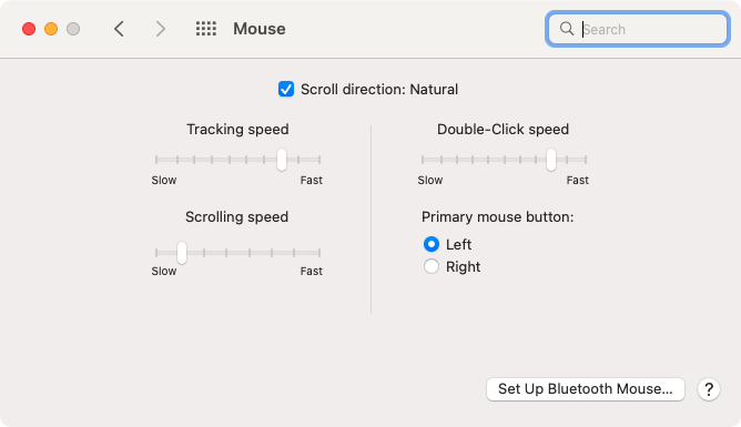 Many of the controls in macos have secret options that appear when you hold option and open the setting, but i haven't been able to figure out which one opens the better mouse control that the Dumpsterfire Mouse has when it's plugged in.