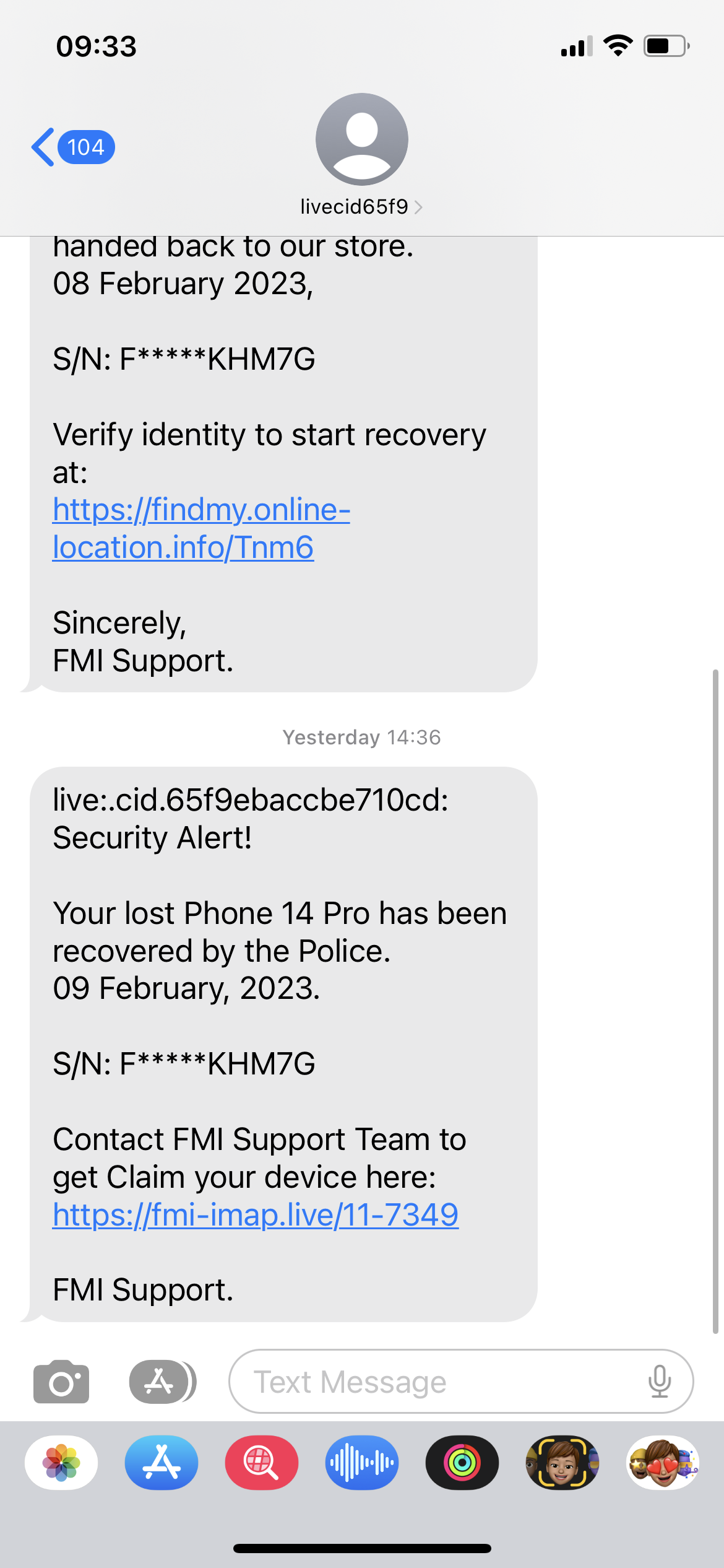I’m sending u the photo of the sms.