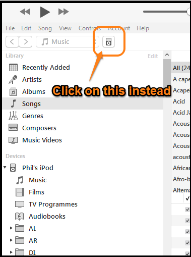 If you are still not getting anywhere, please post a screenshot of your iTunes screen, showing what you do see.